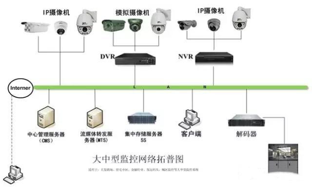完整的視頻監控系統是由攝像機、傳輸、控制、顯示、存儲錄像5大部分組成。攝像機通過網絡線纜或同軸視頻電纜將視頻圖像傳輸到控制主機,控制主機再將視頻信號分配到各監視器及錄像設備,同時可將需要傳輸的語音信號同步錄入到錄像機內。 通過控制主機,操作人員可發出指令,對云臺的上、下、左、右的動作進行控制及對鏡頭進行調焦變倍的操作,并可通過視頻矩陣實現在多路攝像機的切換。利用特殊的錄像處理模式,可對圖像進行錄入、回放、調出及儲存等操作。
