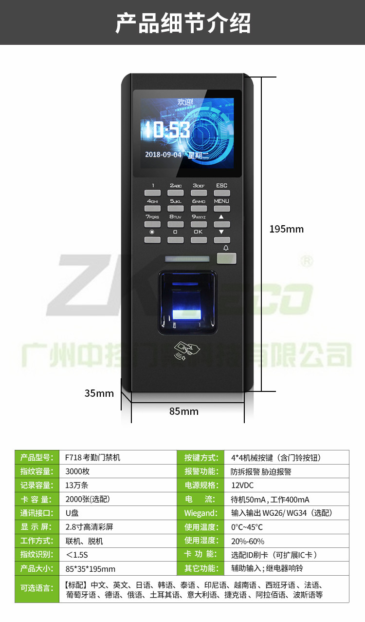 指紋考勤門(mén)禁一體機(jī)F718